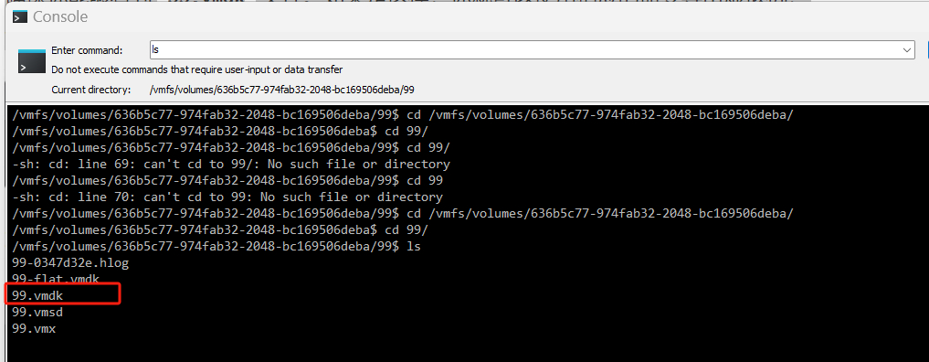 Убедитесь, что вы видите файл 99.vmdk. Далее вы можете экспортировать виртуальную машину с помощью соответствующей команды.