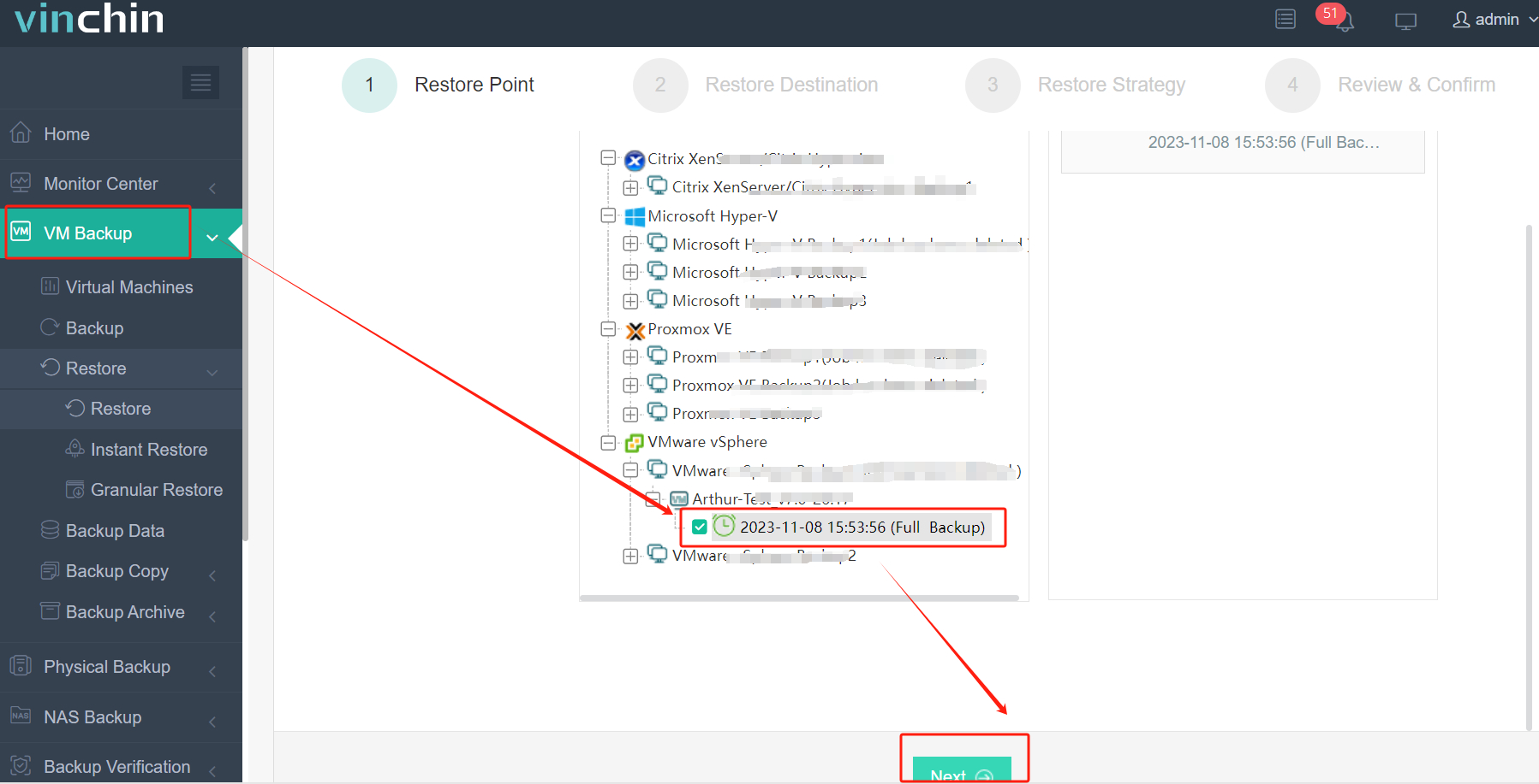 1. Просто выберите резервную копию виртуальной машины VMware > нажмите «Далее».